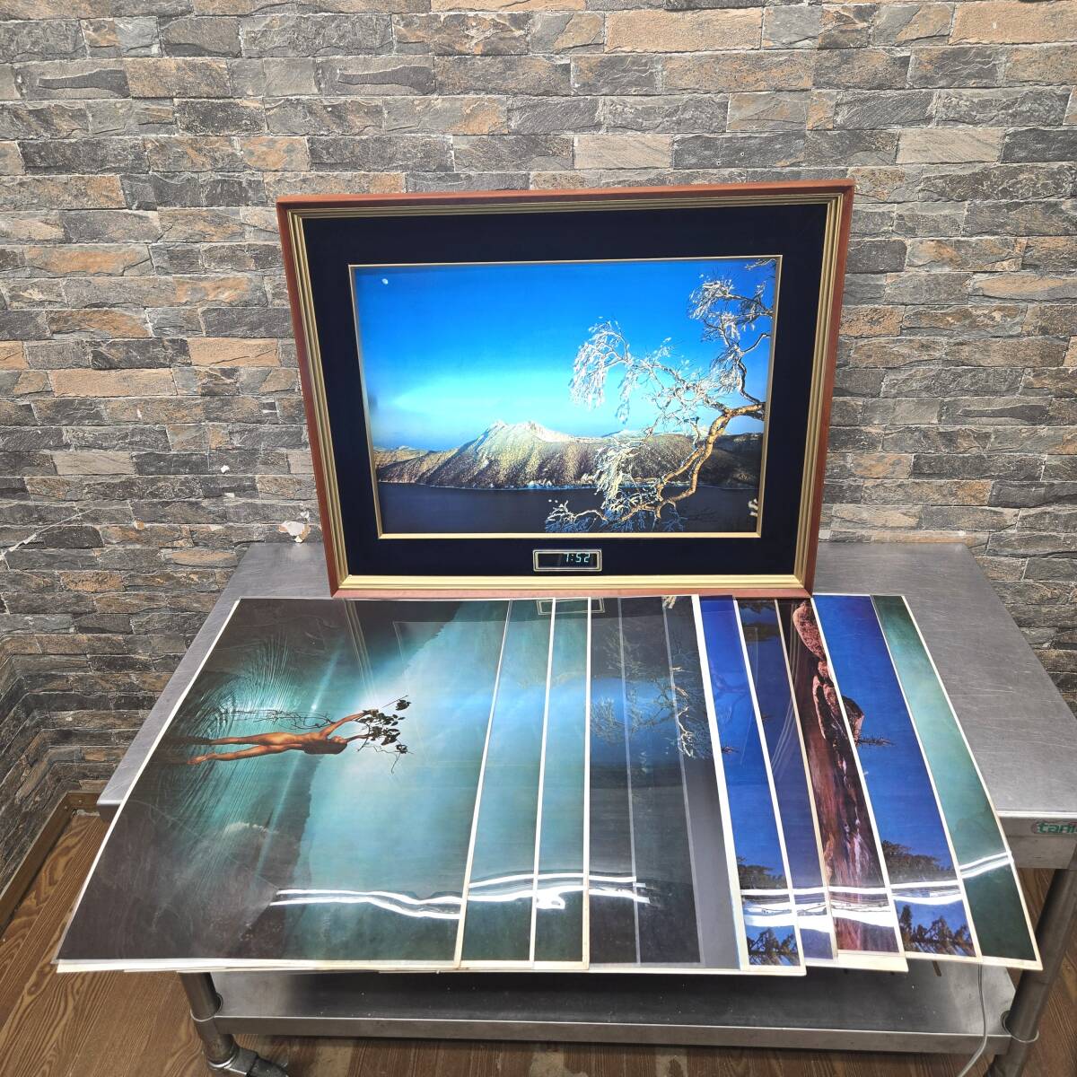 - ♪♪5f009-5 照明 ライトアップ デジタル時計付 アートフレーム 額縁 W740×H585 バックライト けい光燈 絵画など 【フォト11枚付】♪♪