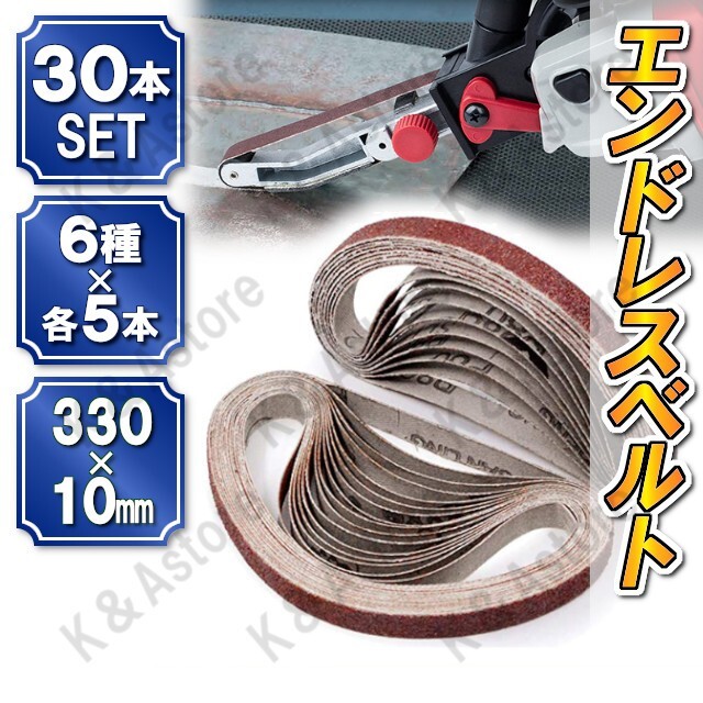 > ベルトサンダー 交換用 替えベルト 30本 10mm幅 330mm サンドベルト エンドレスベルト 研磨 サンディング ヤスリ 紙やすり DIY バリ取り