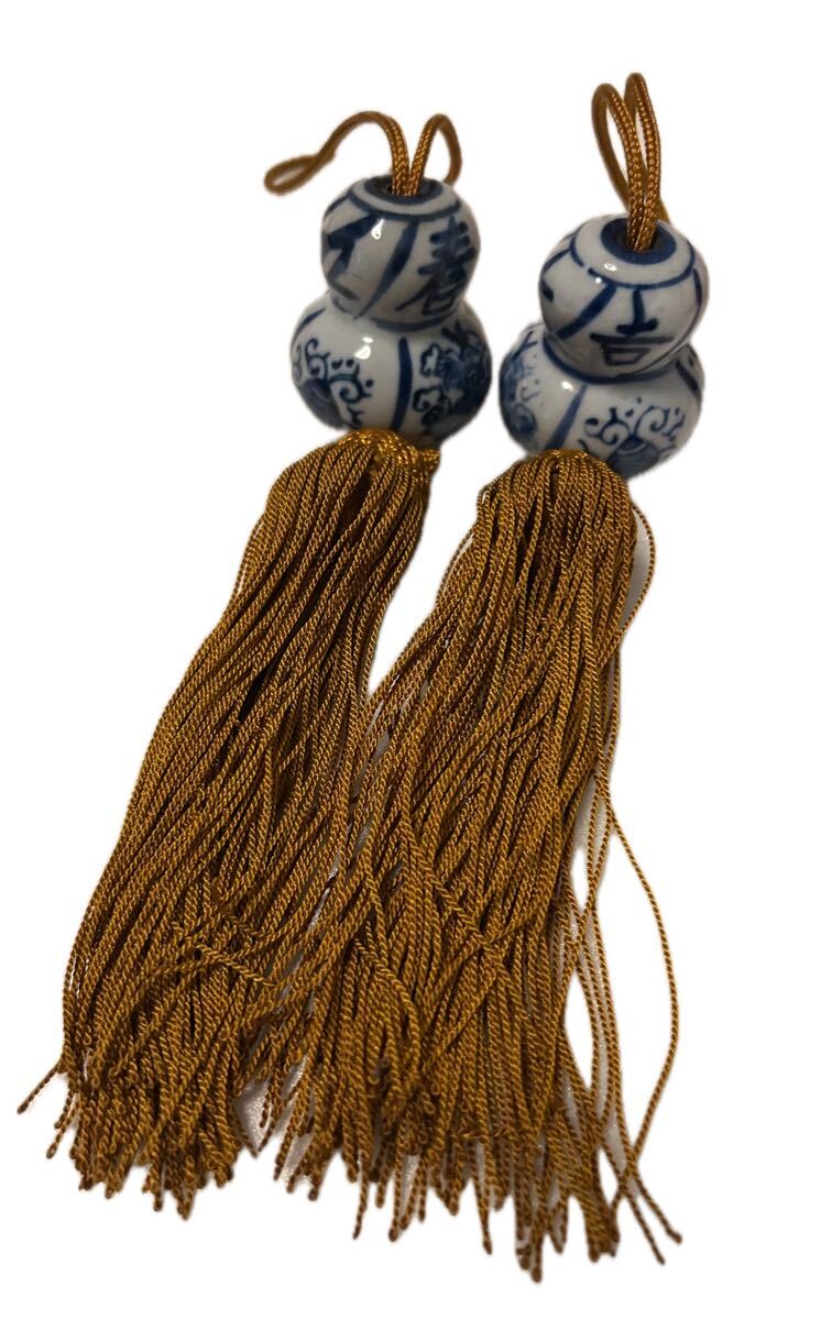 - 風鎮d/掛軸/飾り/掛け軸/瓢箪形/白&紺×黄土色/陶器/掛け軸小物/床の間/伝統文化/G381