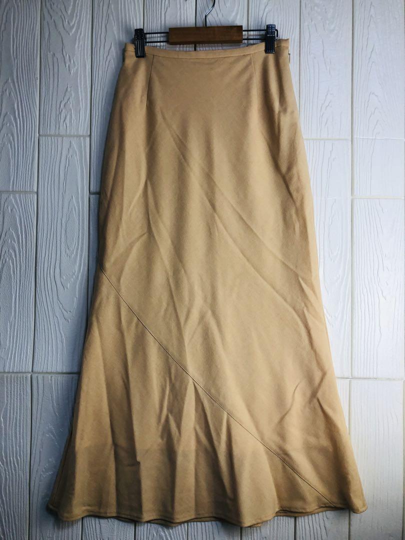 - Blanc Noweau ベージュ フレアロングスカート ウエストファスナー