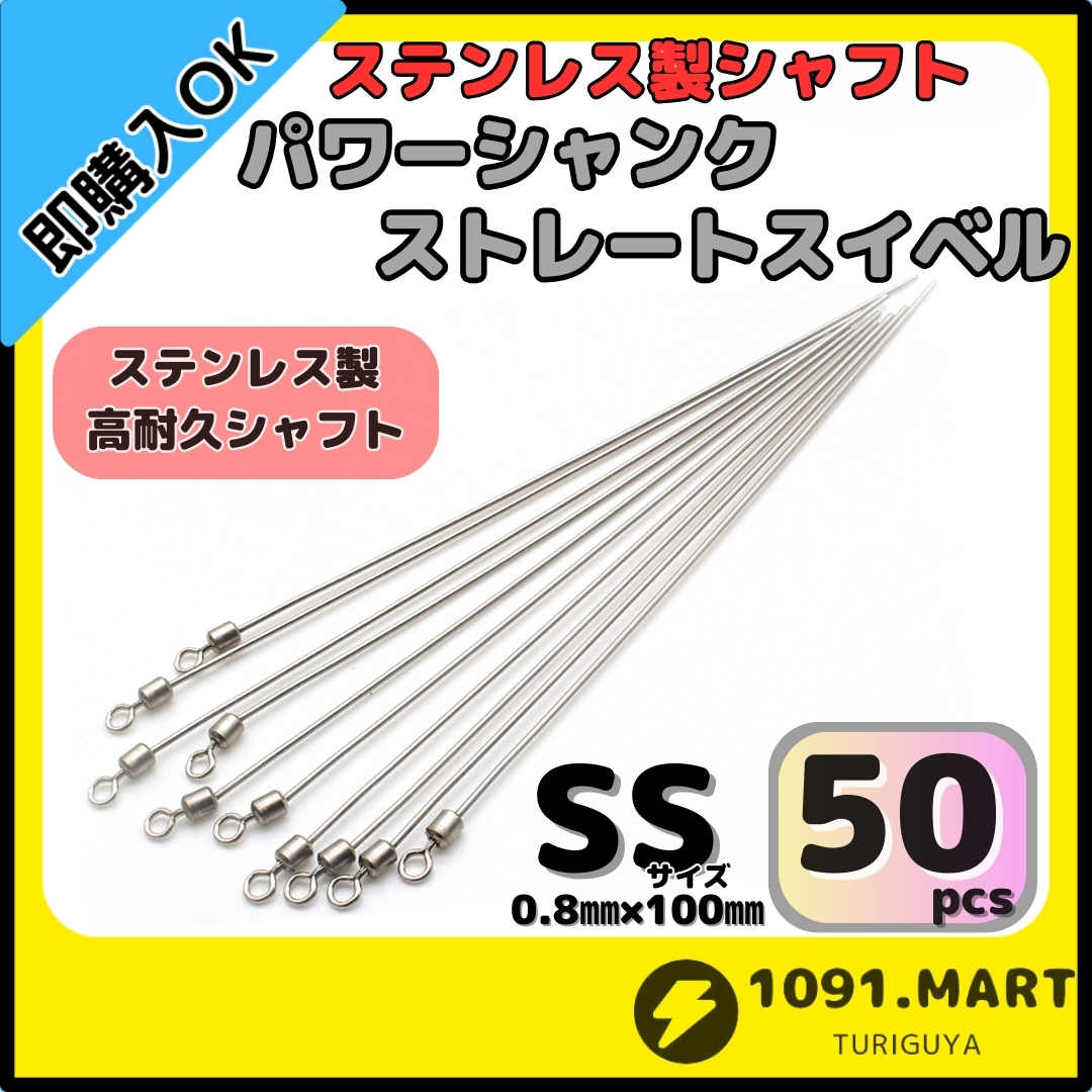 - 【送料無料】パワーシャンク ストレートスイベル SSサイズ 50本 高耐久ステンレス製 ロングシャフト チェリーリグ スピナー 仕掛け自作に!