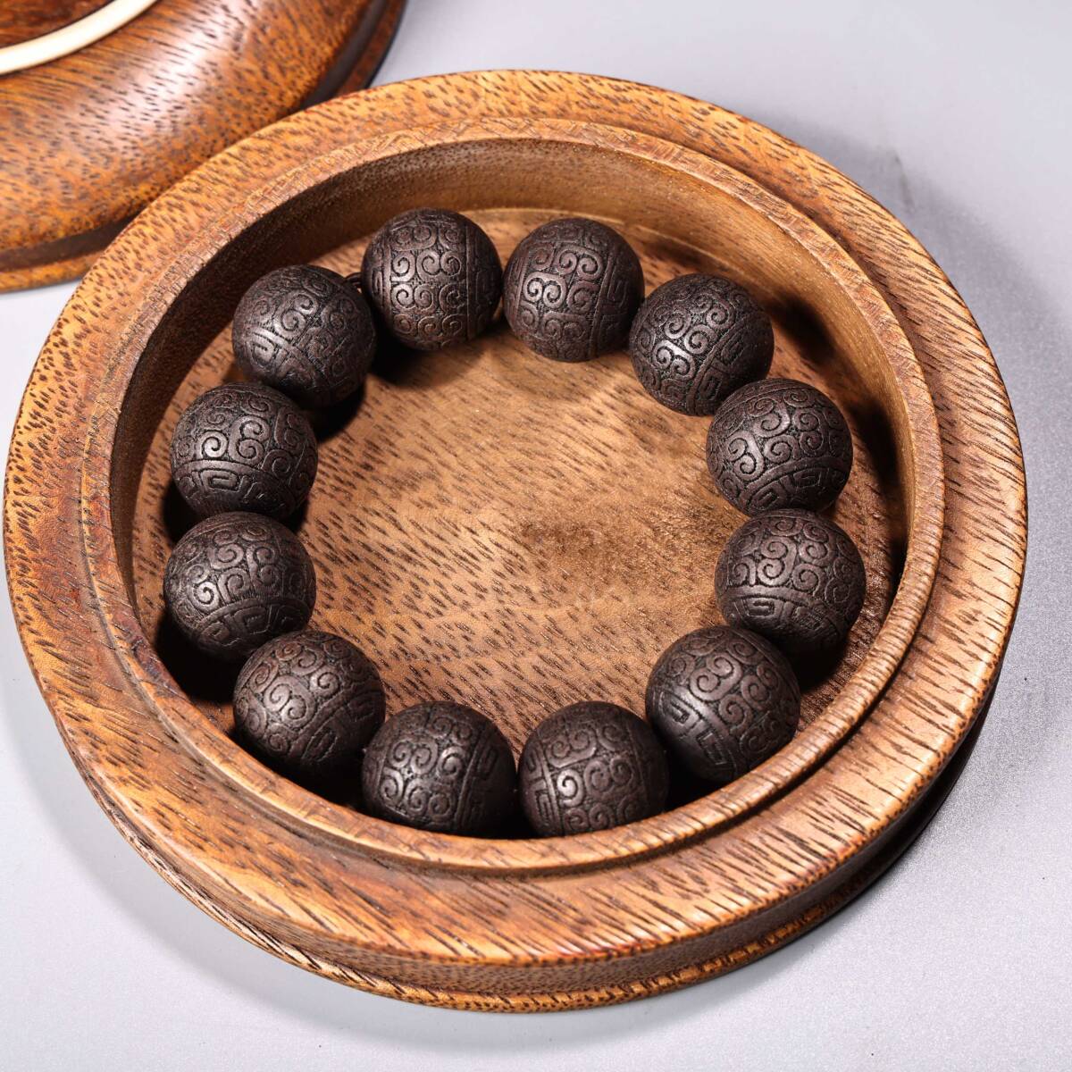 - 清 乾清宮藏 古沈香彫 奇楠 黑油 老料 手鏈 手串 腕輪 数珠 念珠 刺盒 箱付 置物 時代物 古董品 骨董 旧家蔵出し 唐物 中国古玩 古美術品