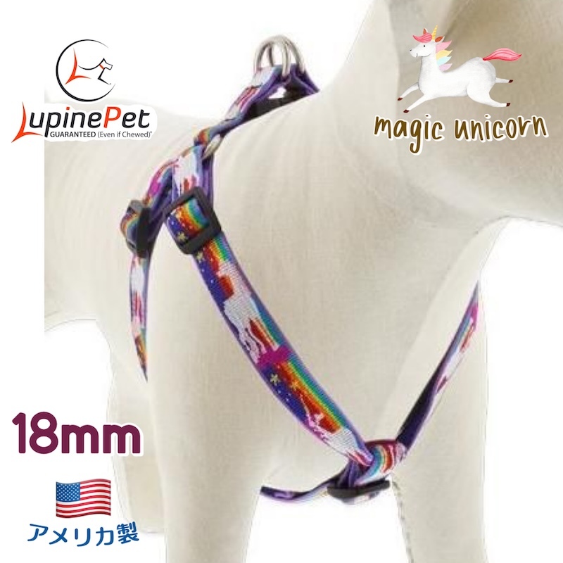 > ステップインハーネス・Mサイズ 18mm幅マジックユニコーン柄 38-53cm LUPINEルパイン アメリカ製 軽量丈夫 中型犬