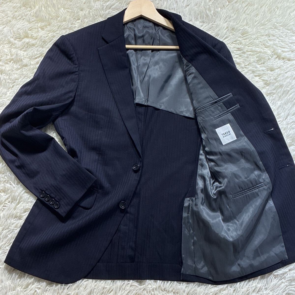 > 極美品◎TAKEO KIKUCHI テーラードジャケット Super100's 紺 ネイビー ストライプ 2B S〜M相当 メンズ