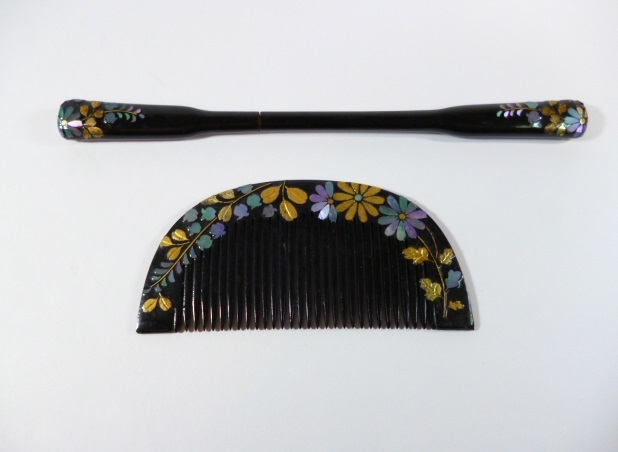 - ф 漆塗 螺鈿細工 櫛 笄 ф 漆塗り