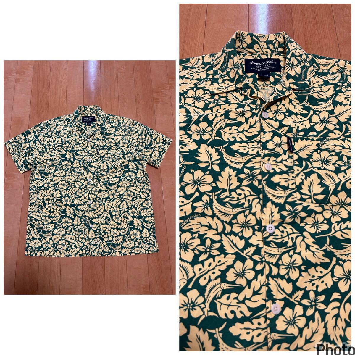 > 良品☆USA古着/Abercrombie EST.1892 アバクロ サイズXL大き目.日本2XL以上並 半袖オールドアロハシャツ カジキ.魚&花.葉&ロゴ総柄 タブ付