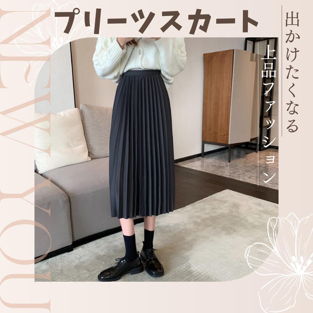 - 190F03 プリーツスカート ハイウエスト フリーサイズ 着痩せ グレー