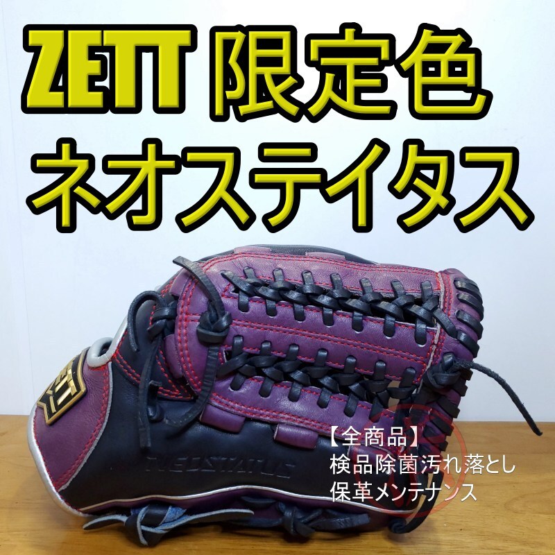 > ZETT ゼット ネオステイタス NEOSTATUS 限定カラー ネイビー×パープル×シルバー 美品 内野用 軟式グローブ