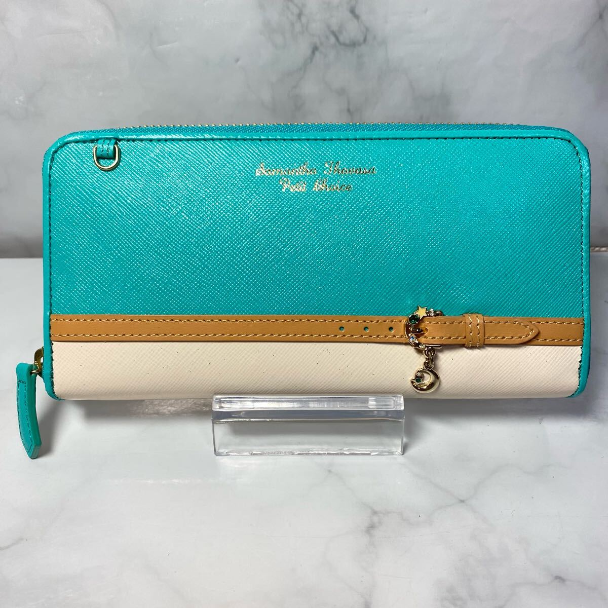- 未使用 Samantha Thavasa Petit Choice サマンサタバサ プチチョイス ラウンドファスナー長財布 グリーン バイカラー ベルト レザー
