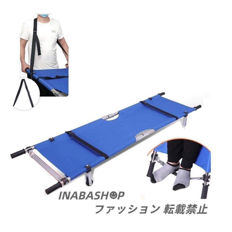 - 折りたたみ 担架スチール製 肩掛け担架 防水 軽量 簡易ベッド救護用 防災キャスター付 フットペダル 二つ折り ストレッチャー 滑り止め搬送