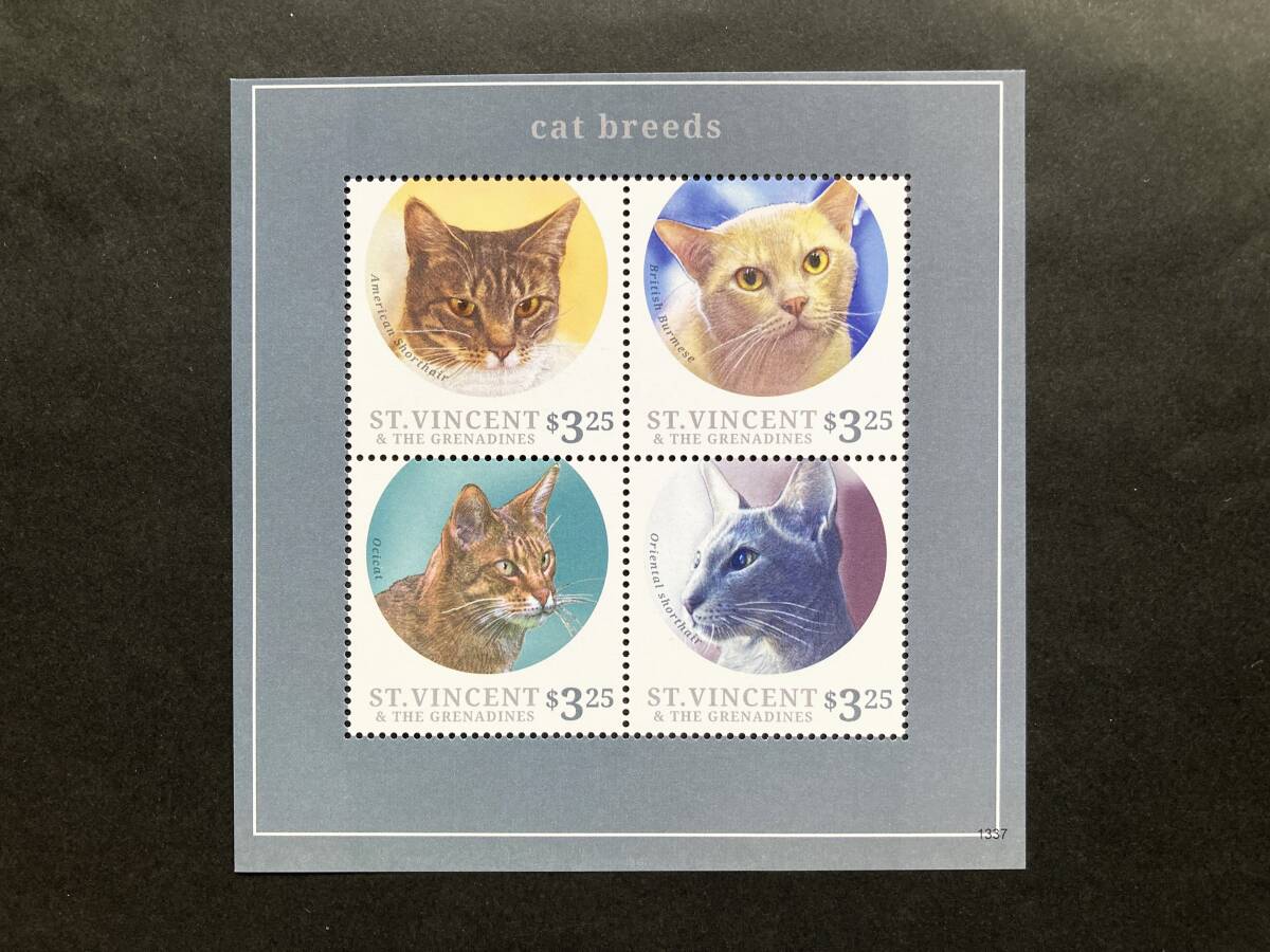 - 外国切手: セントビンセント・グレナディーン諸島切手 「ネコ」(アメリカンショートヘア ほか) 4種m/s 未使用