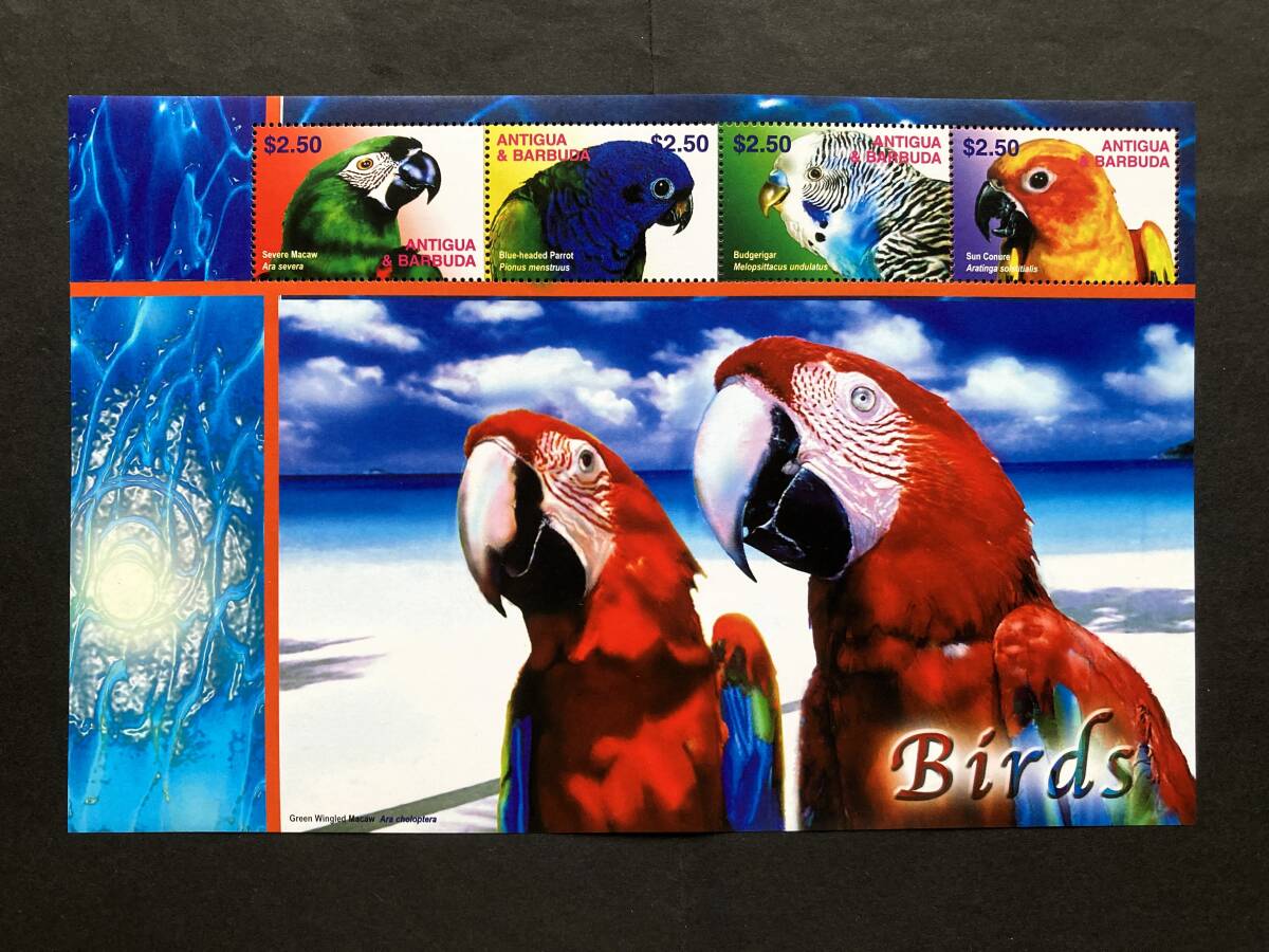 - 外国切手:アンティグア・バーブーダ切手 「鳥(トリ)Ⅱ」(ヒメコンゴウインコ ほか)大型 4種m/s 未使用