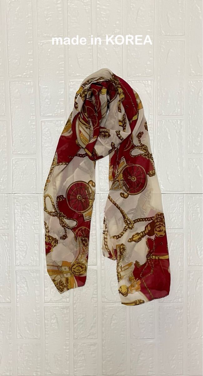 - 【韓国製 】プリントストール レッド系 スカーフ 薄地 ストール