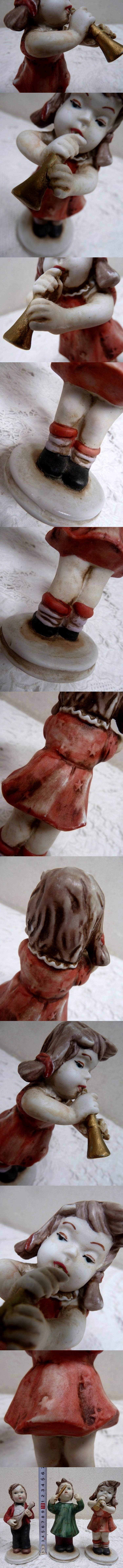 - (☆BM)陶器製 3人の子供達 音楽隊 楽器 人形 置物 レトロ オブジェ 3点 アンティーク調 フィギュリン