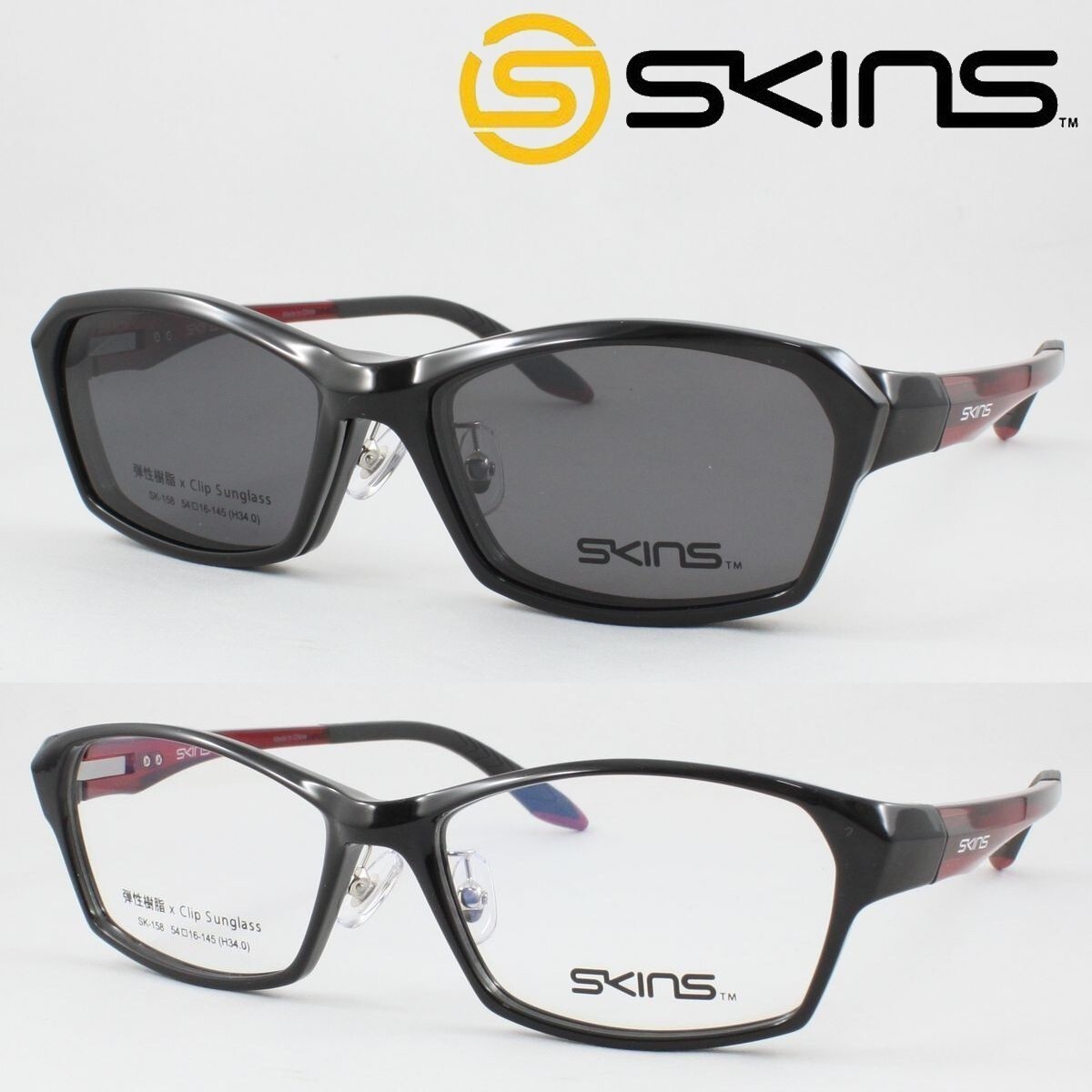 > SKINS スキンズ メガネフレーム SK-158-4 脱着式 マグネットクリップ偏光サングラス 度付き対応 近視 老眼鏡 遠近両用 スポーツ 軽量