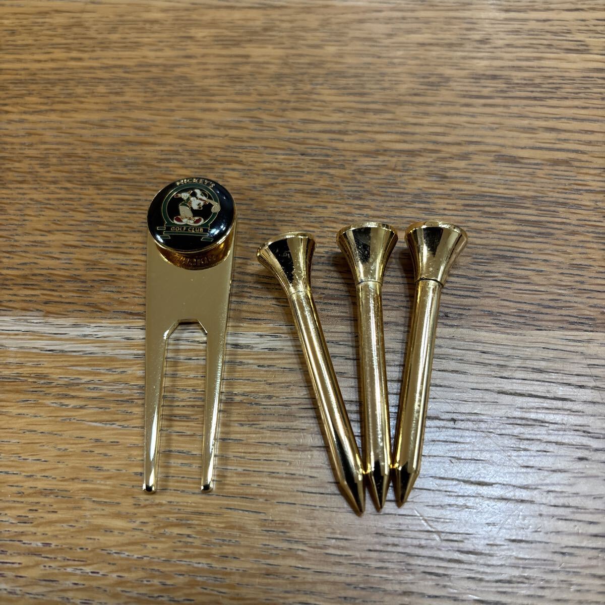 - ディズニー ミッキーマウス ゴルフマーカー付グリーンフォーク コース未使用品 ゴールドカラー 送料込