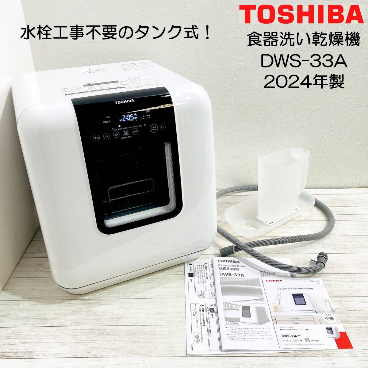 - E1ET0402【美品・2024年製】東芝 食器洗い乾燥機 DWS-33A 卓上 タンク式|高温水洗浄/ヒーター式温風乾燥|分岐水栓不要 TOSHIBA