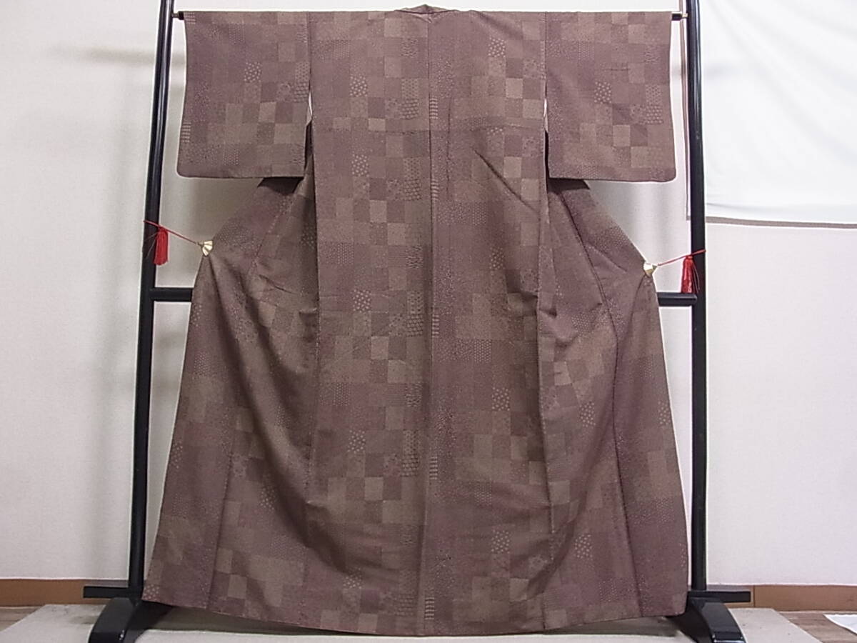- 着物おきな2★江戸小紋 市松寄せ小紋柄 洗える着物 ポリエステル★kk204