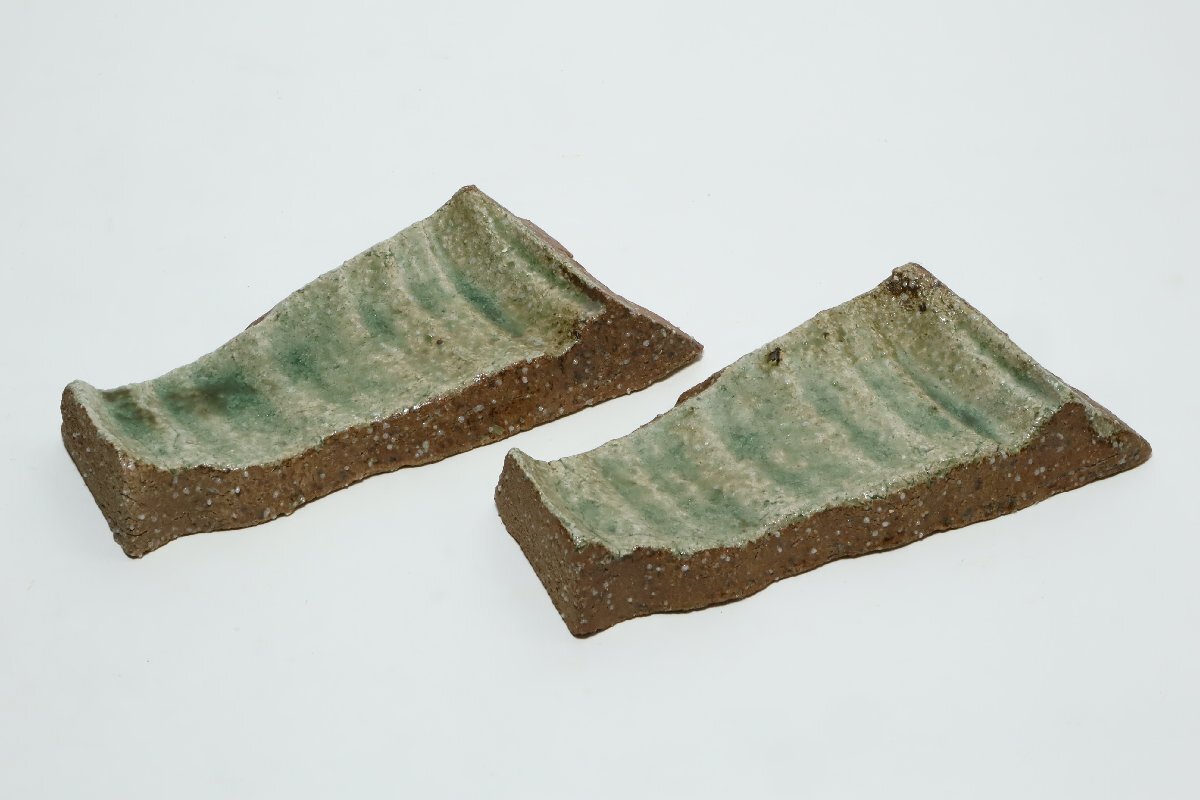 | ・坂田甚内 灰釉 変形皿 二客 /益子焼 板皿 自然釉 寿司皿 |