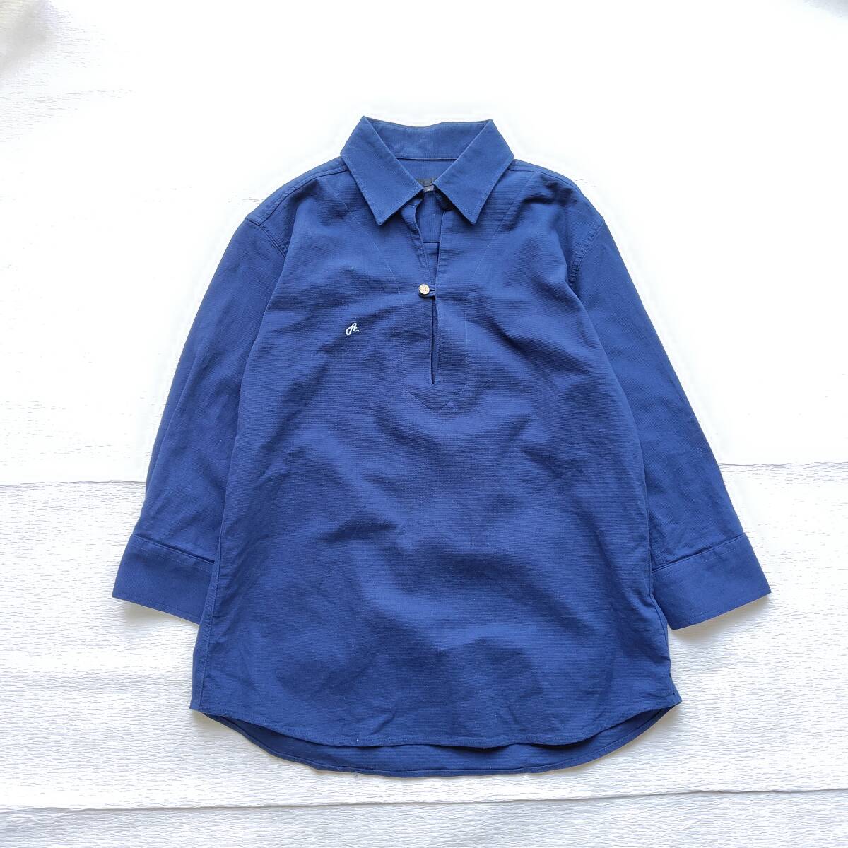 > alistair アリステア 綿麻ストレッチ スキッパー カプリシャツ 7分袖 紺 ユニセックス メンズS レディースM250801-08