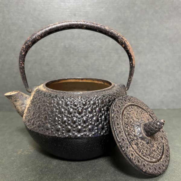 - 【南部鉄器 】刻印あり 急須 亀甲紋 南部刻印 重さ約633g 鉄急須 鉄蓋 鉄茶道 錆あり ■山53 三