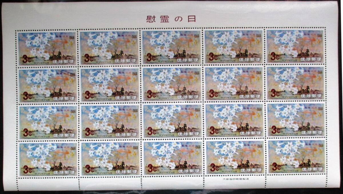 - 沖縄切手・琉球切手 慰霊の日 3¢切手 20面シート 147 ほぼ美品です。
