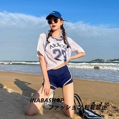 - オーバーTシャツ タンキニ3点セット 水着 大人可愛い ビキニセット レディース 体型カバー 透け感 おしゃれ