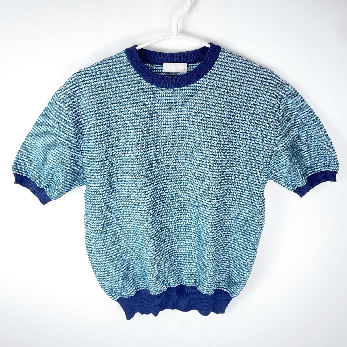 > 【中古】GOOVI グービ クルーネックニット 半袖 ウォッシャブル 和紙ブレンド ボーダー 1 グリーン系 25SSD01GV ユニセックス