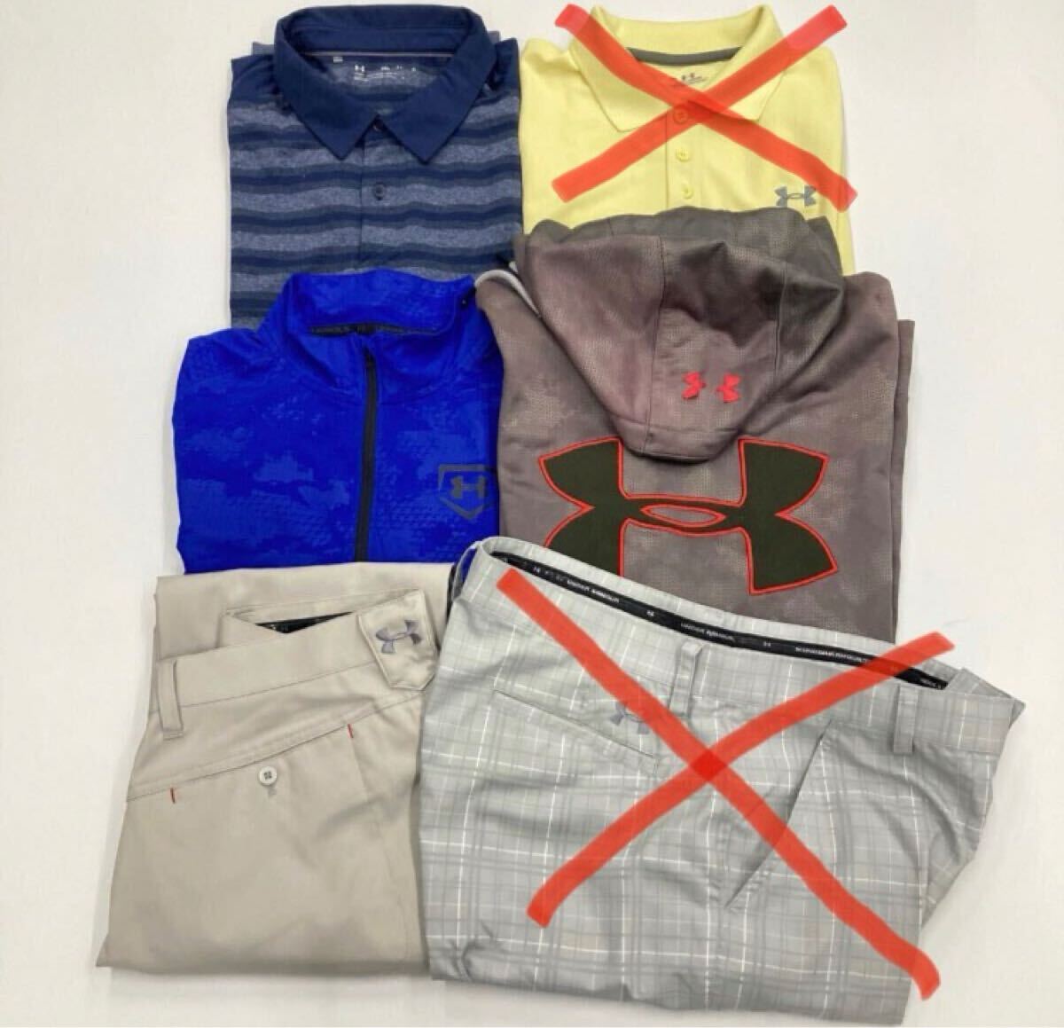 > スポーツウェア メンズ4点セットまとめ売り アンダーアーマー ゴルフ 半袖ポロシャツ ハーフジップ パーカー パンツ メンズ サイズ76 M~2XL