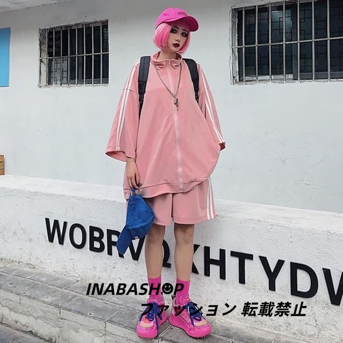 > 春夏 半袖 2点セット ジャージ レディース ショートパンツ セットアップ スウェット ゆったり カジュアル スポーツ ジッパー ゆったり