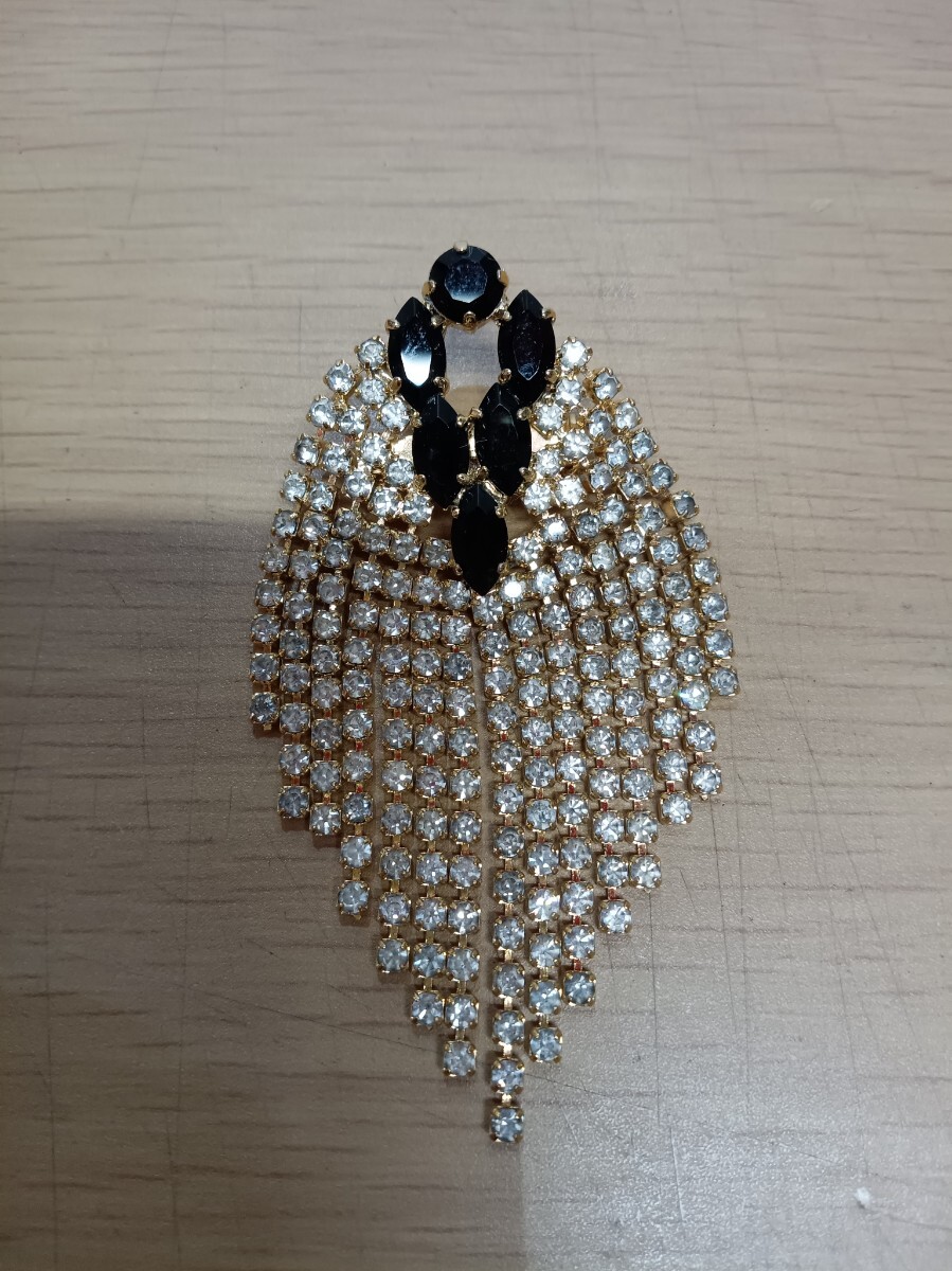 - レディース ラインストーン ブローチ ブラック ゴールドカラー アクセサリー used