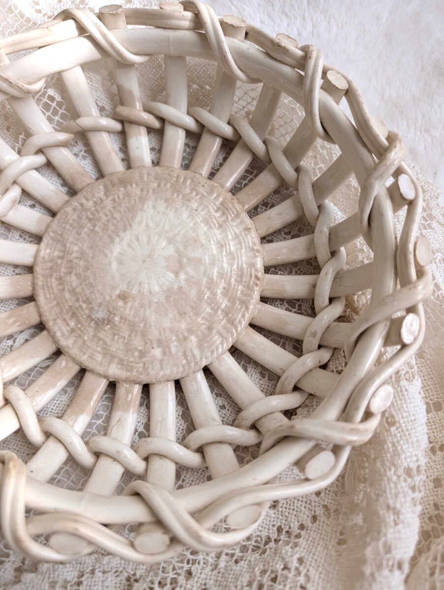- ◆ フランス アンティーク 陶器 パニエ皿 パニエプレート かご編みプレート かご編み皿 / プレート 皿 籠 パニエ