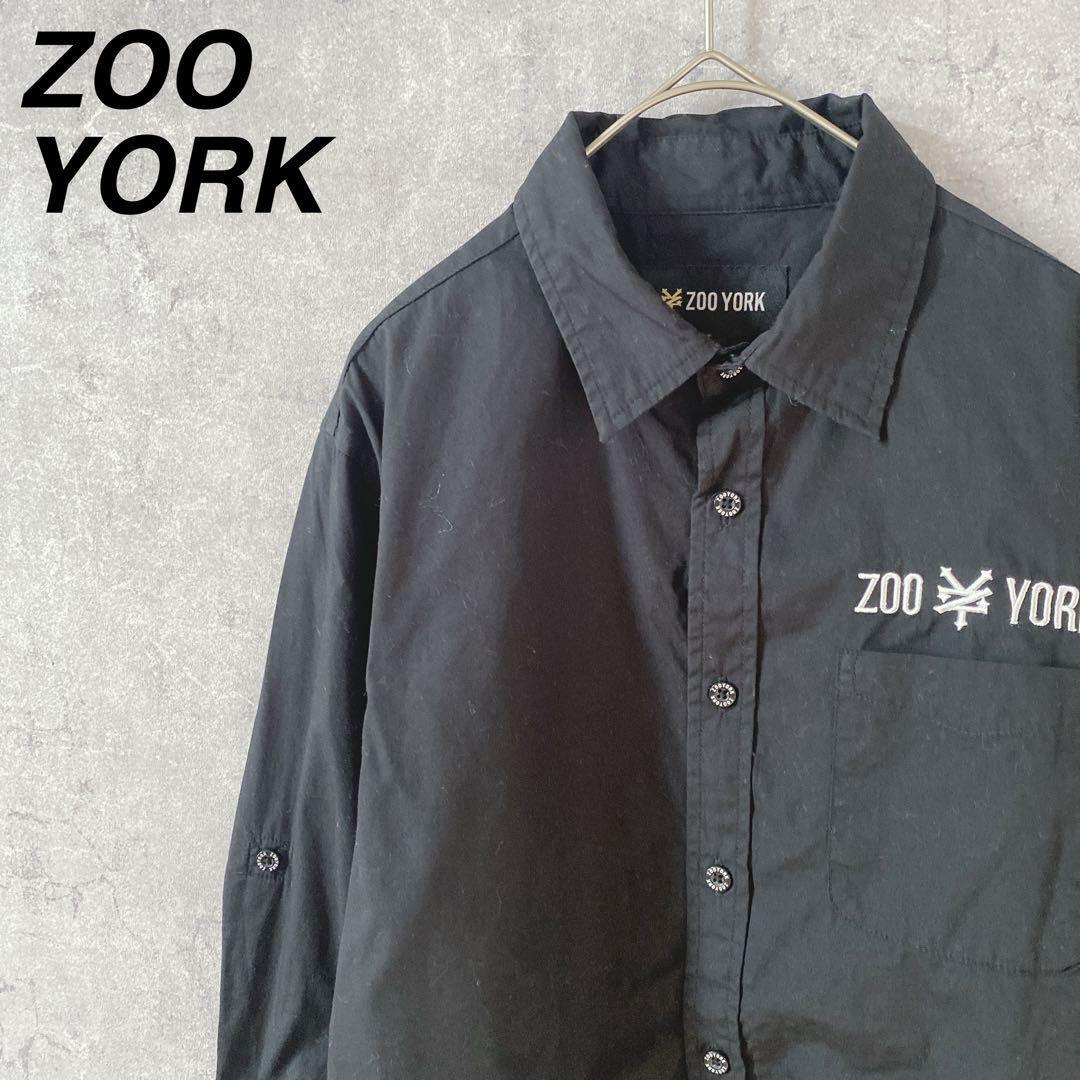 - ZOO YORK 刺繍ロゴシャツ 七分袖 背面プリント Mメンズ 黒