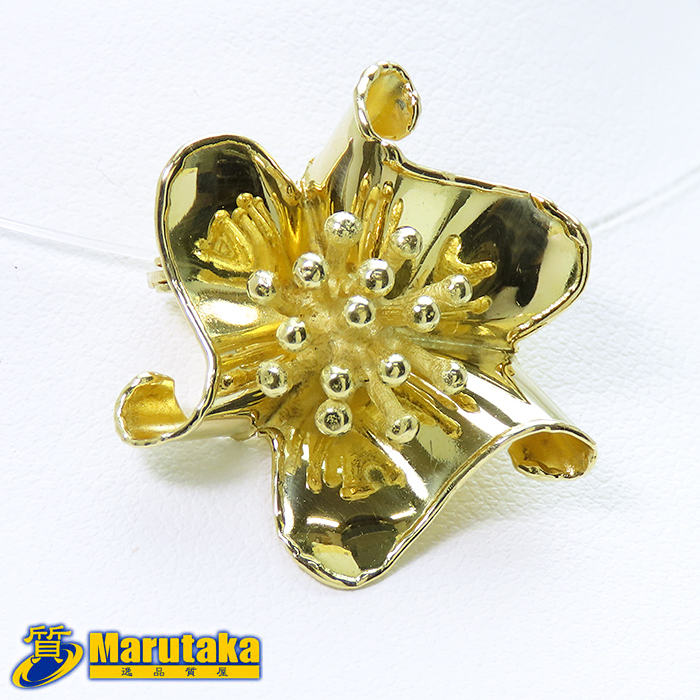 > 【750 フラワー ブローチ】K18 18金 イエローゴールド レディース ジュエリー アクセサリー 花 上品 エレガント ワンポイント 中古