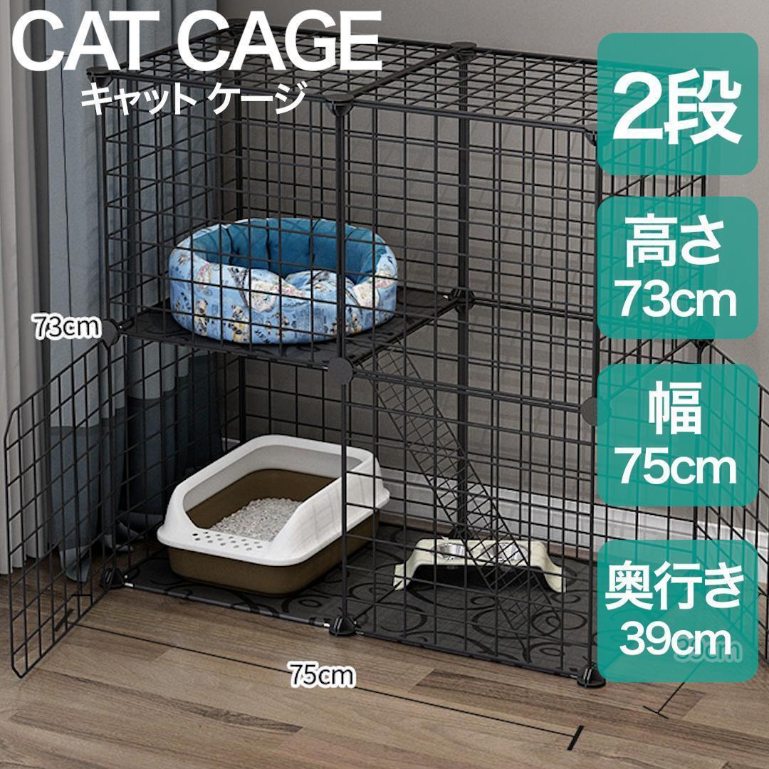 - ペットケージ キャットケージ 2段 組み立て簡単 ジョイント式 猫ゲージ 黒