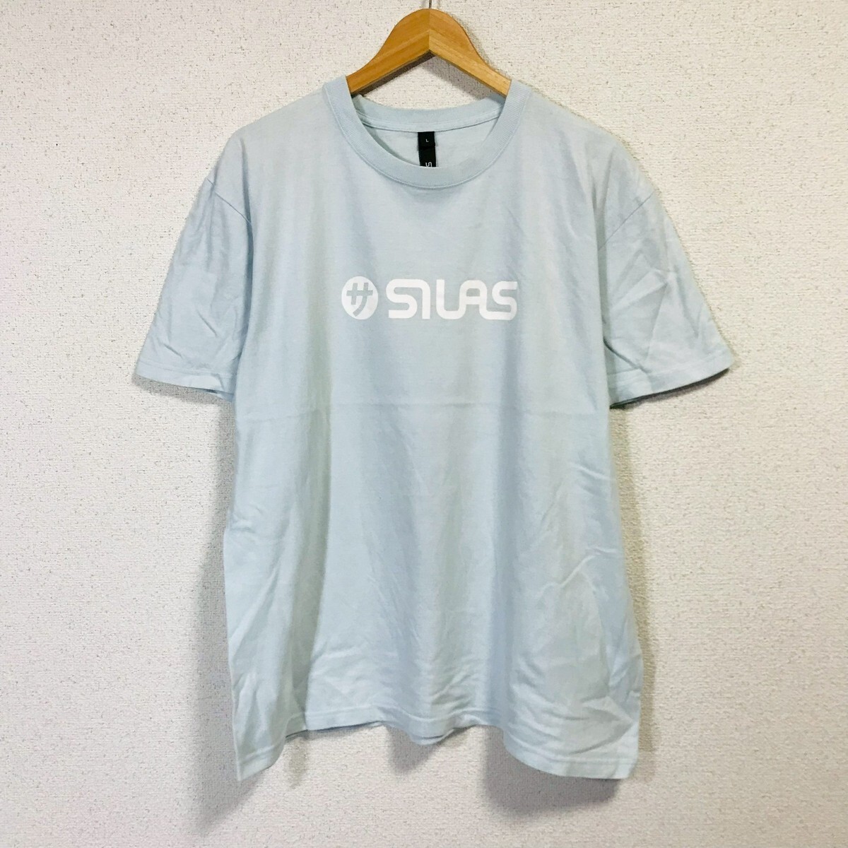 - f3479dL SILAS サイラス フリーサイズ 半袖Tシャツ ブルー ロゴ プリントTシャツ メンズ コットンTシャツ 綿100% ストリート