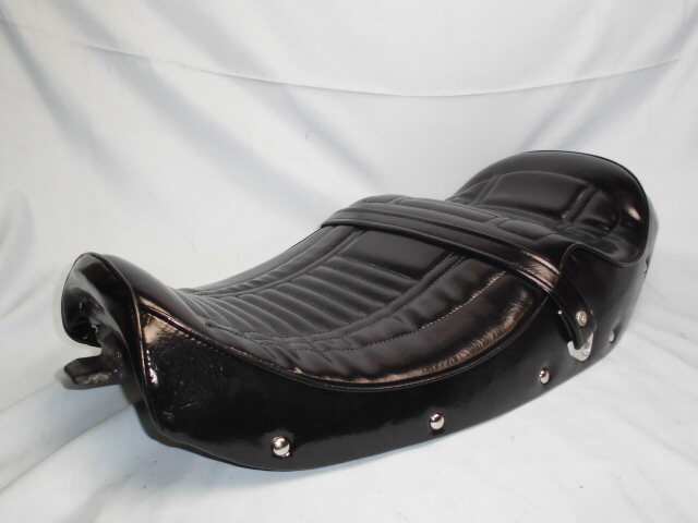 - ■ ゼファー400 FX風 艶有り黒レザー カスタムシート 段シート 鋲打ち