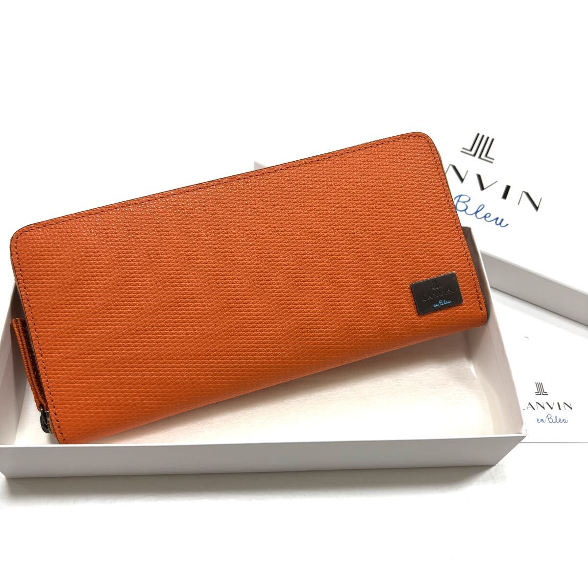 - 新品箱付 ランバン オン ブルー 長財布 ラウンドファスナー 定価1.9万 オレンジ 581606