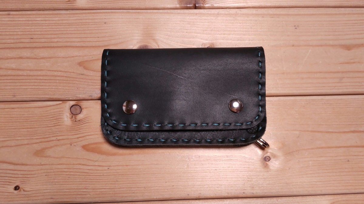 - N056 BURNY ミニトラッカーウォレット ハンドステッチがかっこいい ブラック ヌメ革 ハンドメイド 財布