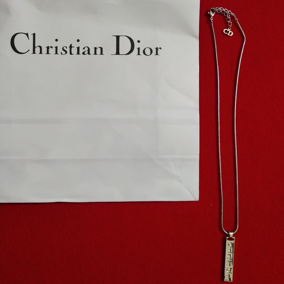> 極美品 正規品 Christian Dior クリスチャンディオール メタル ロゴプレート ネックレス シルバー正規品 ペンダント