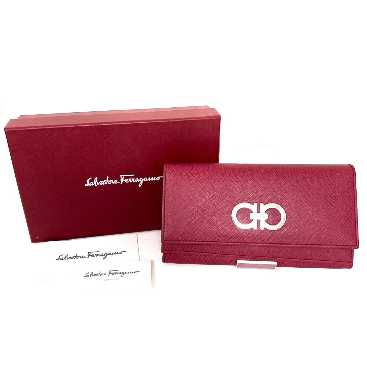 - SD2126 新品未使用! Salvatore Ferragamo サルヴァトーレフェラガモ ダブル ガンチーニ ダブルフラップ レザー 二つ折り長財布 マゼンタ