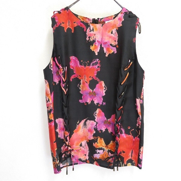 > #s シーバイクロエ SEE BY CHLOE シャツ ブラウス I40 墨黒 赤系 ピンク系 蝶柄 シルク 絹 100% ノースリーブ レディース [889275] k01