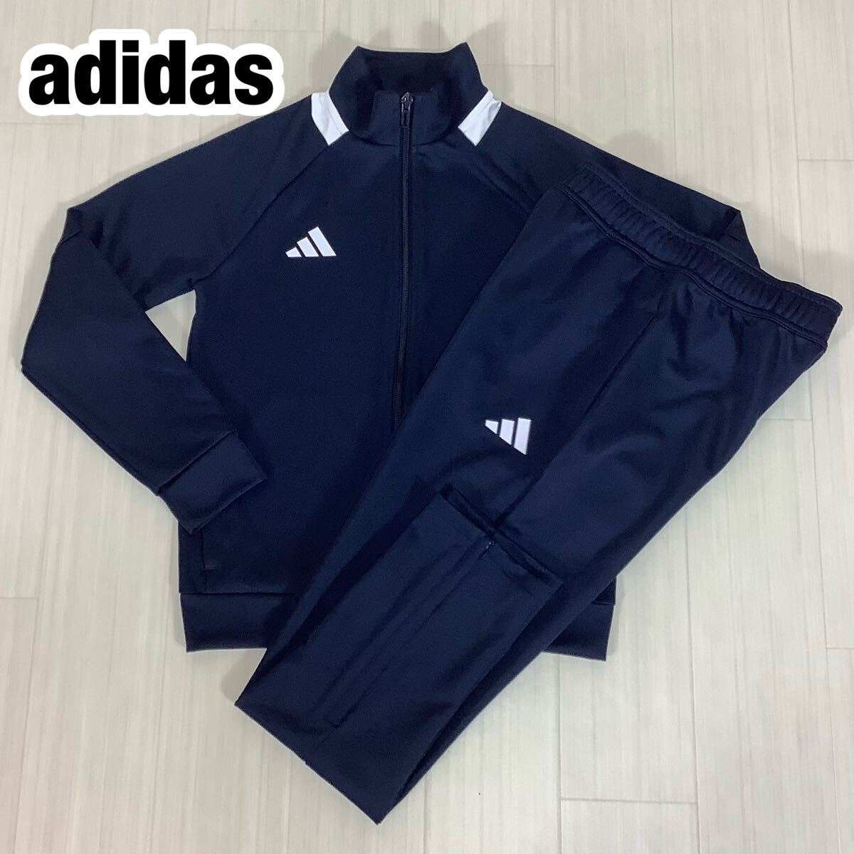 - 【ほぼ未使用】 adidas アディダス トラックスーツ ジャージ セットアップ 上下セット 140cm ネイビー 3ストライプ プリントロゴ