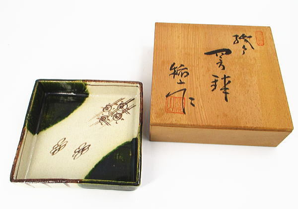 - 赤津焼 織部 四方鉢 稲山作