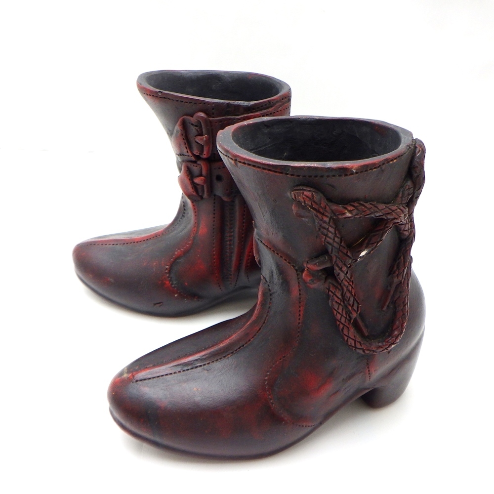 - SI-116 ペア ブーツ型 置物 ペン立て 小物入れ 花瓶 陶器 アンティークショップ保管品 デッドストック ヴィンテージ 輸入雑貨