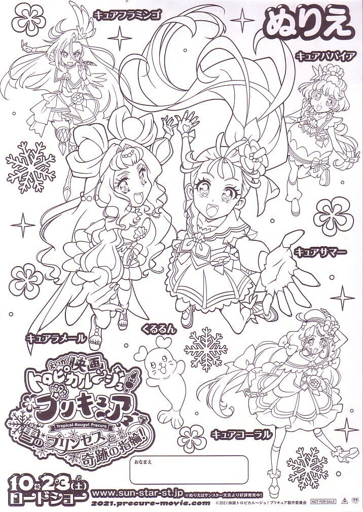 - 「トロピカルージュ プリキュア 雪のプリンセスと奇跡の指輪」の映画チラシ(塗り絵Ver)です