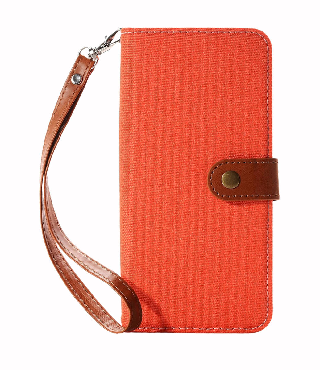 - iPhoneSE2 iPhone SE3 iPhone7/8ケース 手帳型 デニム 4.7 インチ 全面保護 スタンド機能 ストラップ オレンジ ay267