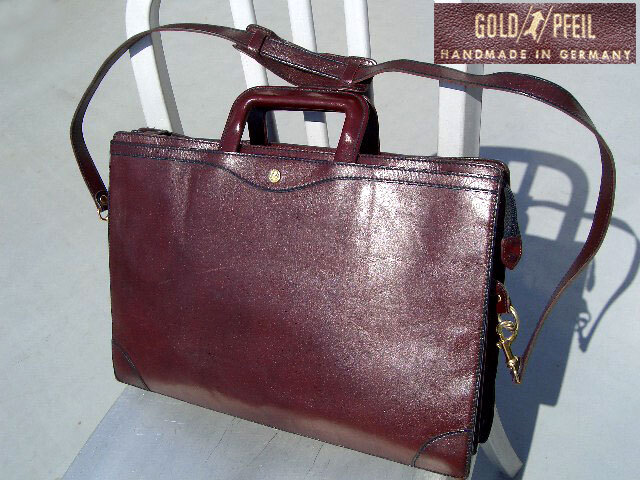 - GOLD PFEIL HAND MADE IN Germany VINTAGE ドイツ 老舗 名門 ゴールドファイル 赤ワイン 本革 葡萄色 出来る男 3WAY ビジネスバック♂