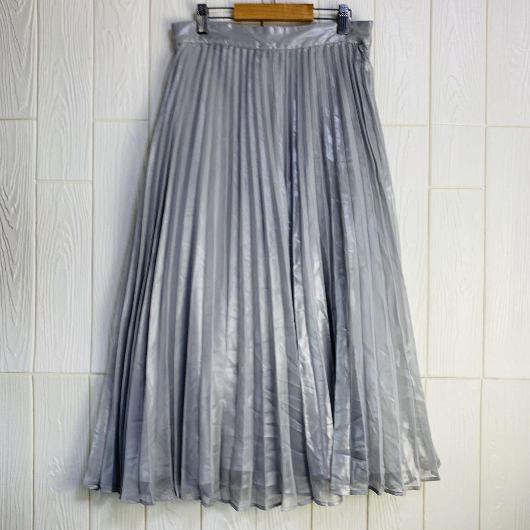 - H&M シルバー プリーツスカート ウエストボタンファスナー68cm 88cm丈