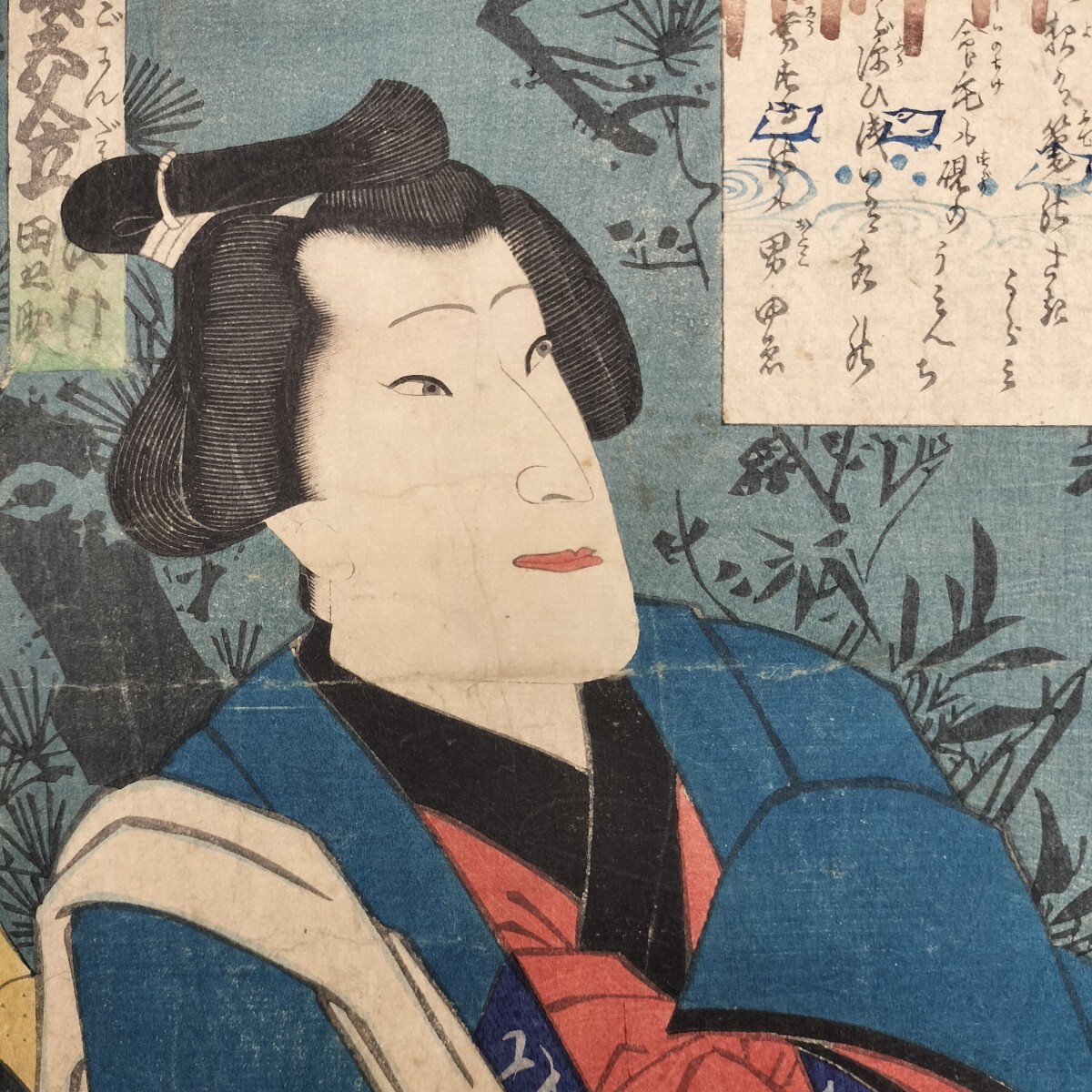 - 江戸期/真作 豊原国周「侠客端唄五人立 澤村田之助」本物浮世絵木版画 歌舞伎絵 役者絵 芝居絵 錦絵 大判 裏打ち
